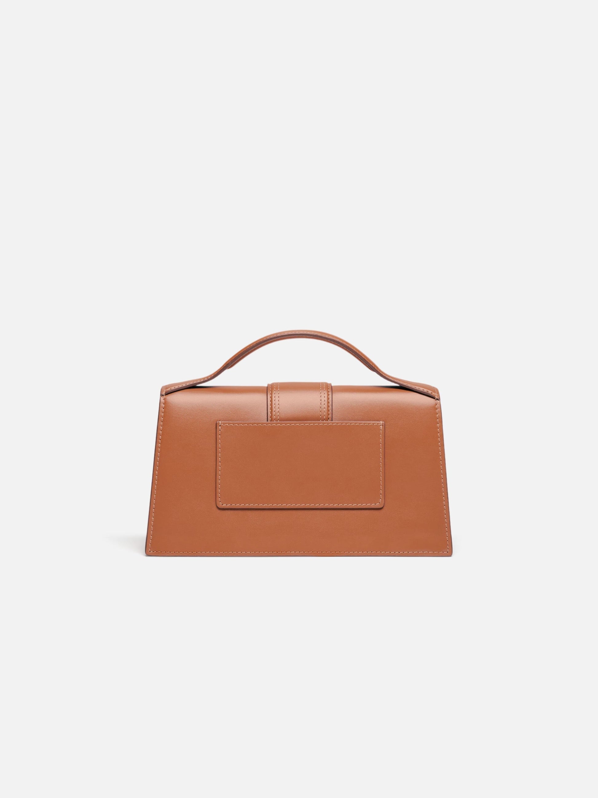 The Le Grand Bambino is a timeless Jacquemus icon, crafted in smooth black leather with a structured silhouette. Featuring a sleek top handle and a removable shoulder strap, it offers versatile styling from day to evening. Finished with the signature gold Jacquemus logo, this bag is the perfect blend of modern elegance and everyday practicality.